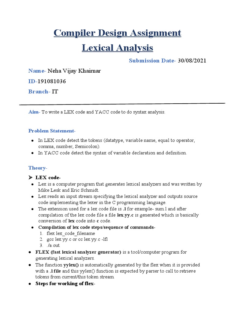 compilation of the lex code file a file lex.yy.c is generated which is basically