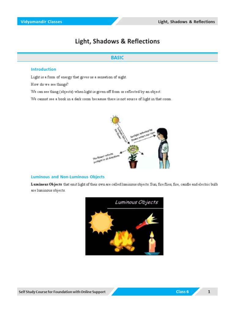 Luminous Objects that emit light of their own are called luminous objects. Sun, fire flies, fire, candle end electric bulb
