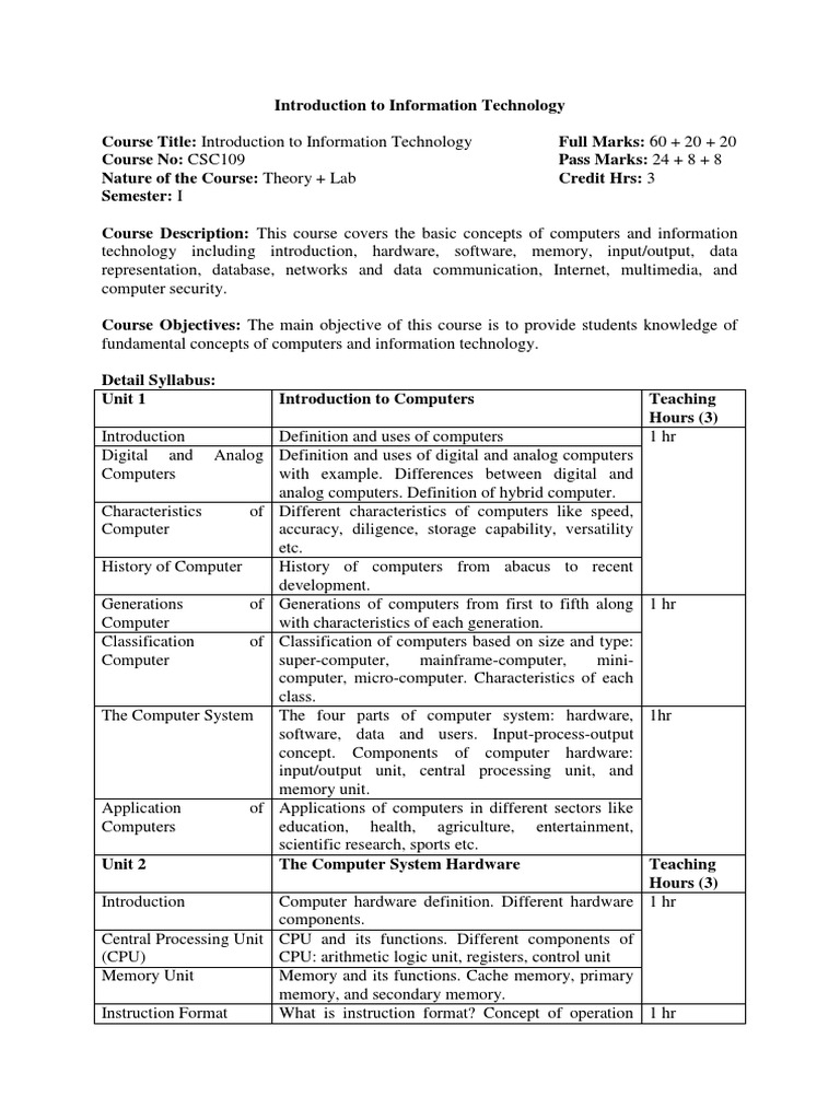 Course Title: Introduction to Information Technology Full Marks: 60 + 20 + 20