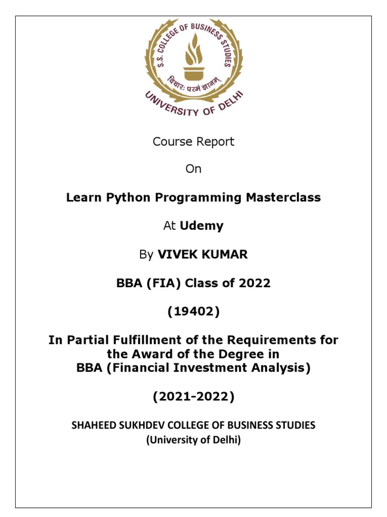 I hereby declare that this course report, submitted to Shaheed Sukhdev College of Business