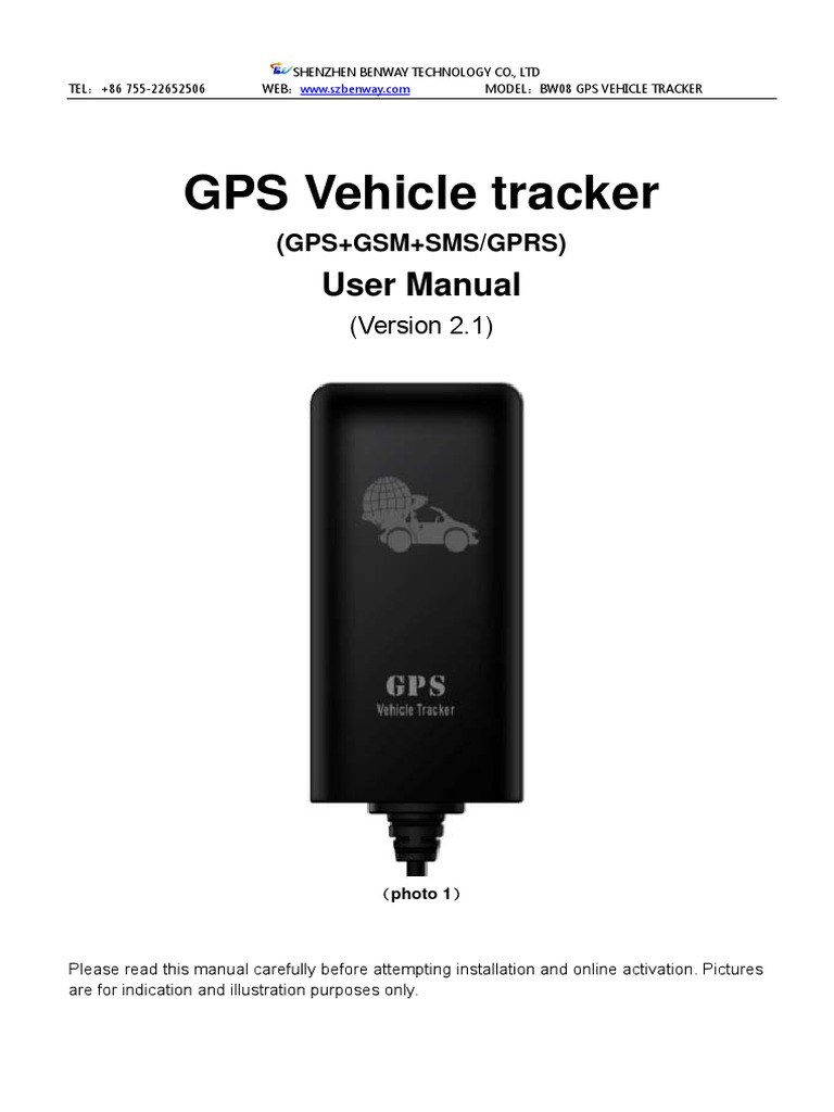 TEL:+86 755-22652506 WEB:www.szbenway.com MODEL:BW08 GPS VEHICLE TRACKER