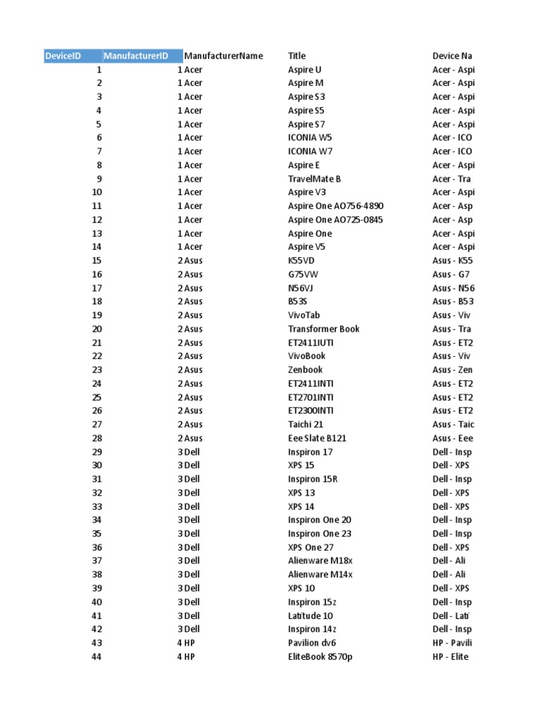 DeviceID ManufacturerID ManufacturerName Title Device Na