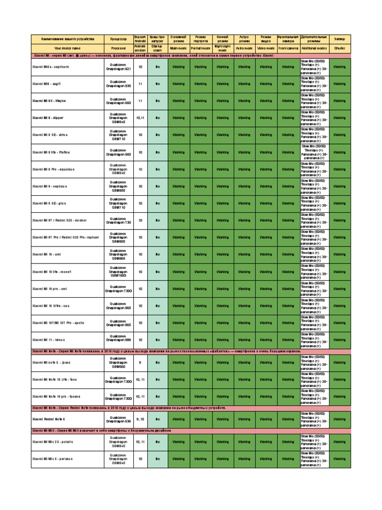 Xiaomi Mi 11 - Venus Snapdragon 888 10 No Working Working Working Working Working Working Working