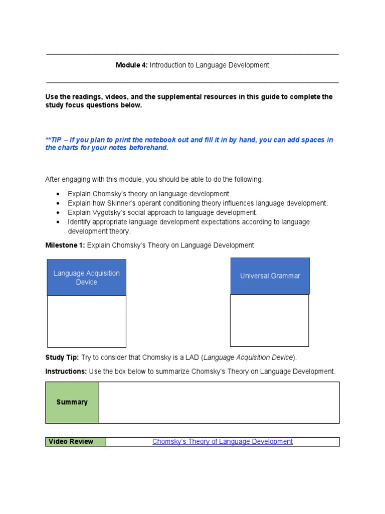 Milestone 1: Explain Chomsky’s Theory on Language Development