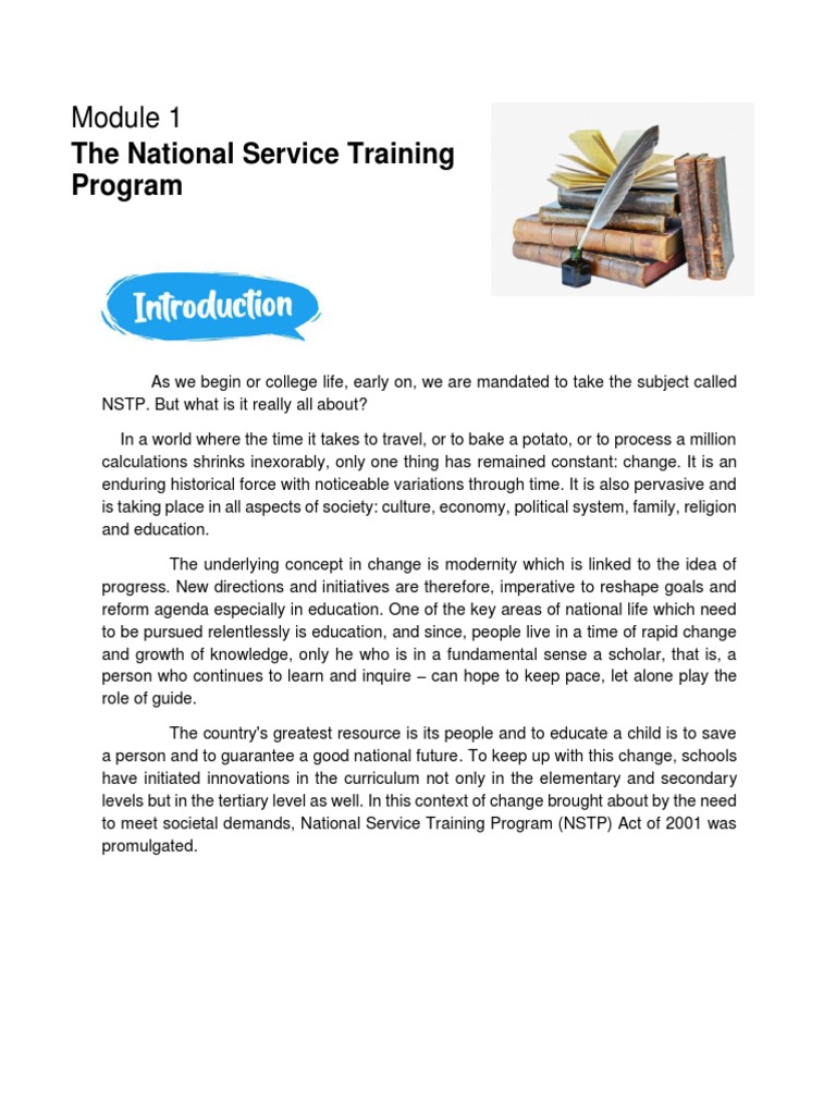 Direction: Write an essay about how you as a NSTP student, youth, and