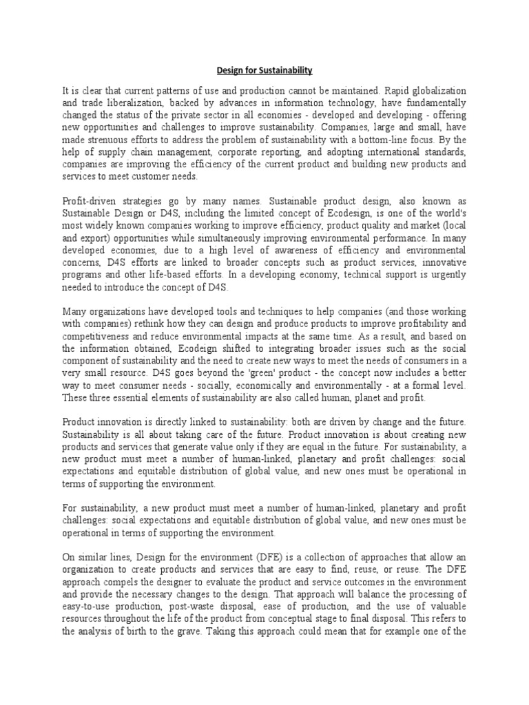 Sustainable Design or D4S, including the limited concept of Ecodesign, is one of the world's