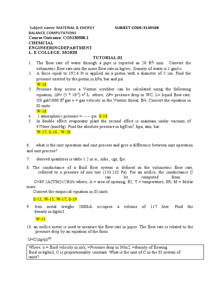 Subject name: MATERIAL & ENERGY SUBJECT CODE:3130508