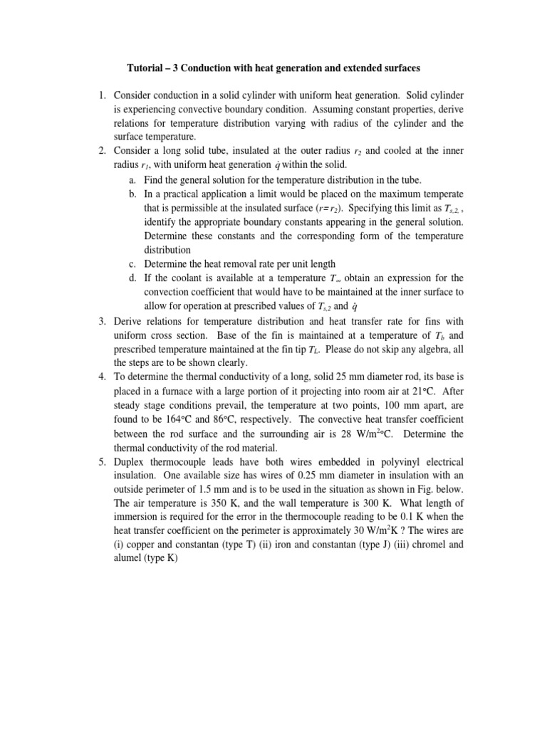 1. Consider conduction in a solid cylinder with uniform heat generation. Solid cylinder
