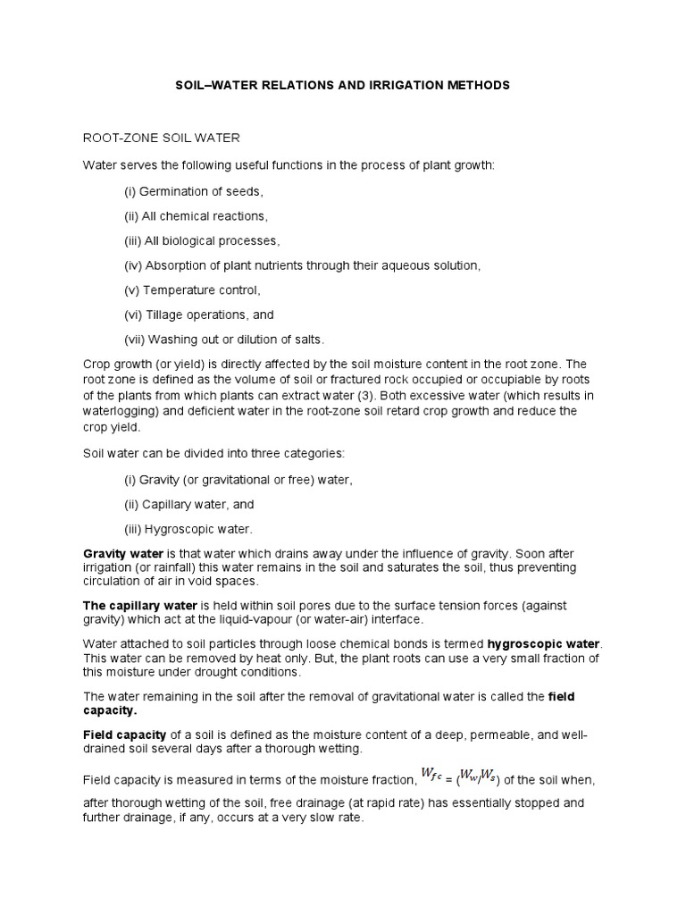 SOIL–WATER RELATIONS AND IRRIGATION METHODS