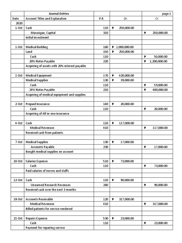 31-Oct The medical equipment depreciate J-2 ₱ 9,000.00 ₱ 9,000.00