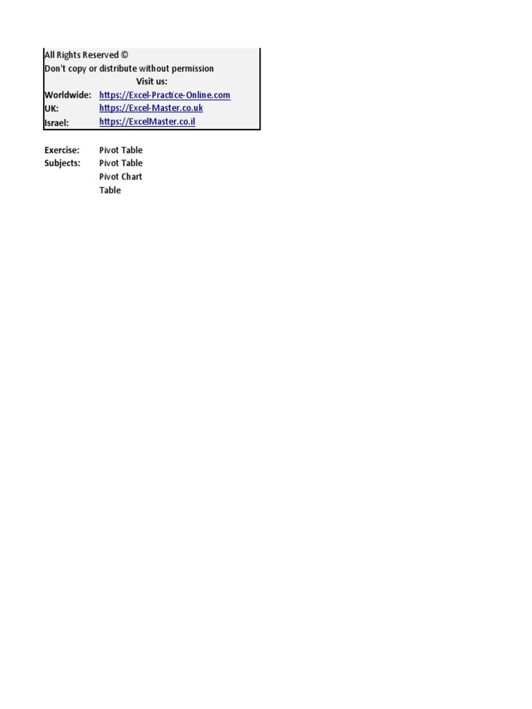 Answer As mentioned before, we can use Pivot Table not only to sum, but also to count.
