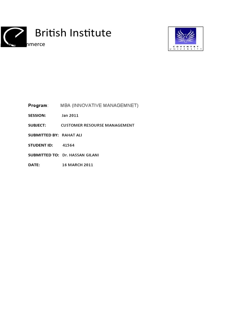 SUBJECT: CUSTOMER RESOURSE MANAGEMENT