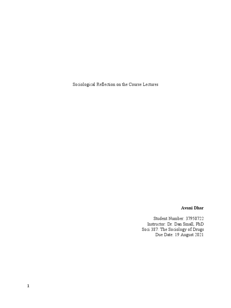 Lecture Reflection 4: Small, Dan. 2021. “Sociological Exploration of Illicit Drug Use in