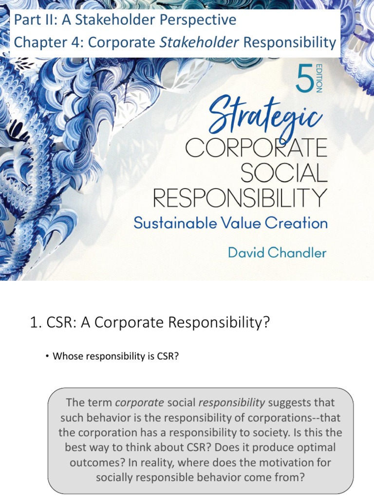 1. Who is responsible for CSR--firms or their stakeholders? Why? Is the