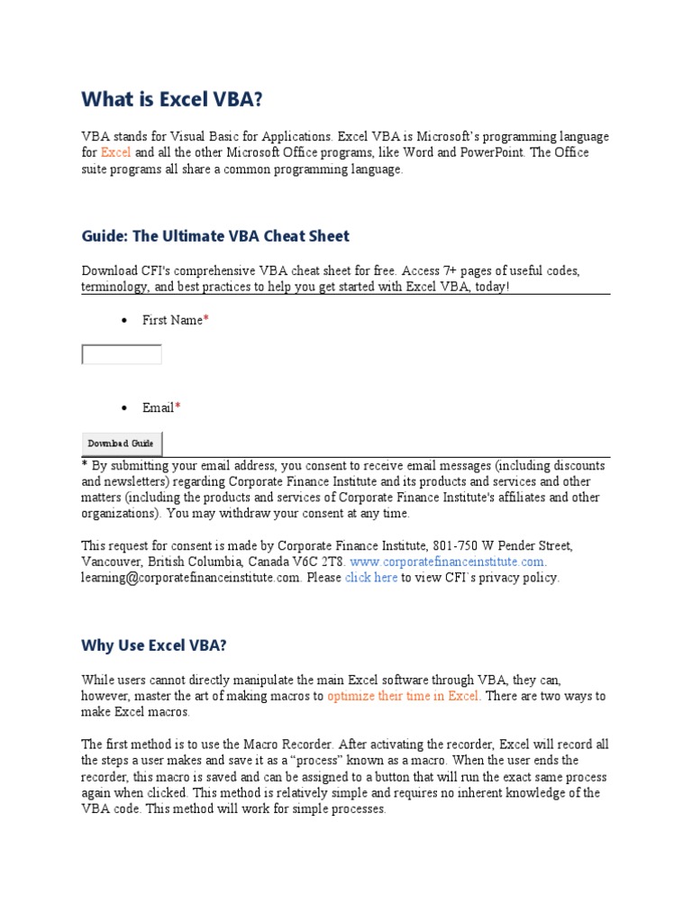 Download CFI's comprehensive VBA cheat sheet for free. Access 7+ pages of useful codes,