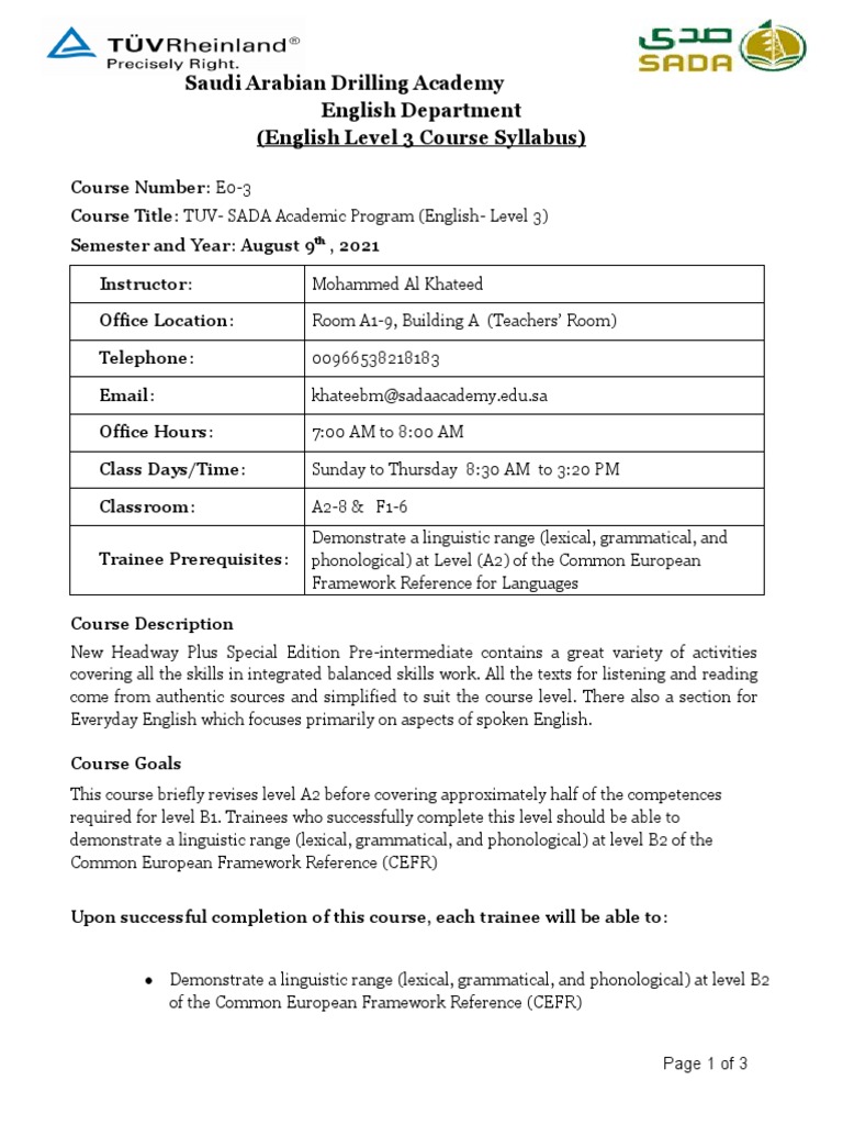 Course Title: TUV- SADA Academic Program (English- Level 3)