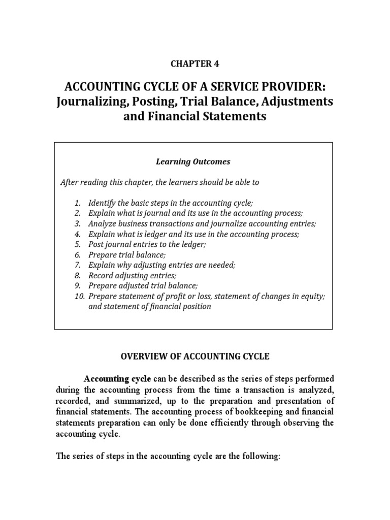 ACCOUNTING CYCLE OF A SERVICE PROVIDER:
