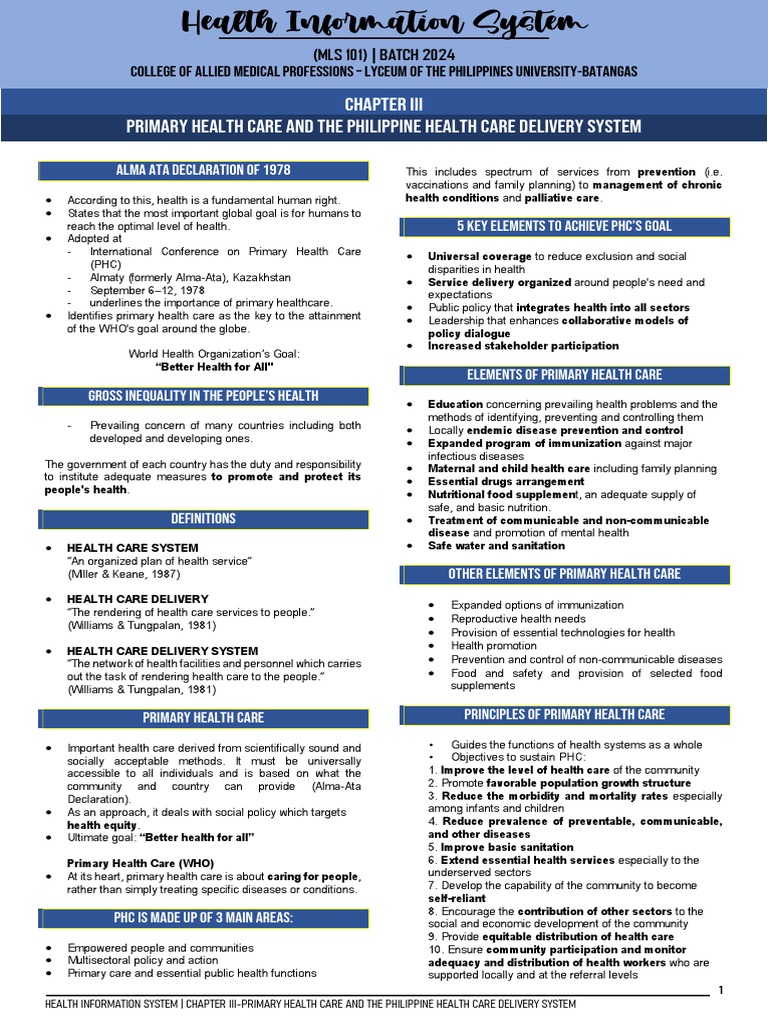 HEALTH INFORMATION SYSTEM | CHAPTER III-PRIMARY HEALTH CARE AND THE PHILIPPINE HEALTH CARE DELIVERY SYSTEM
