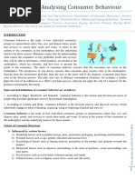 Concepts – Significance – Dimensions of Consumer Behaviour – Application of knowledge of