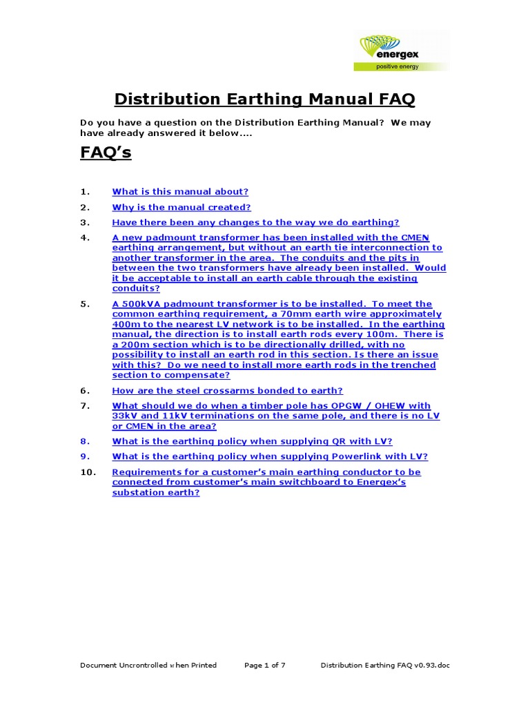 Document Uncrontrolled when Printed Page 1 of 7 Distribution Earthing FAQ v0.93.doc