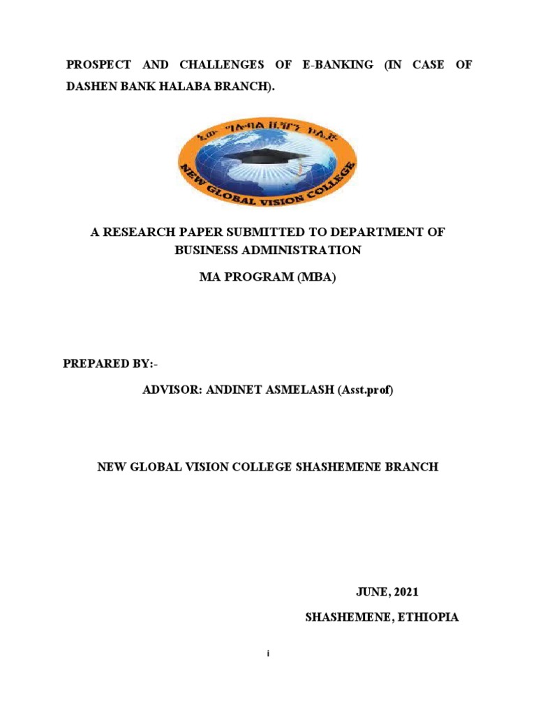 Prospect and Challenges of E-Banking (In Case of Dashen Bank Halaba Branch)
