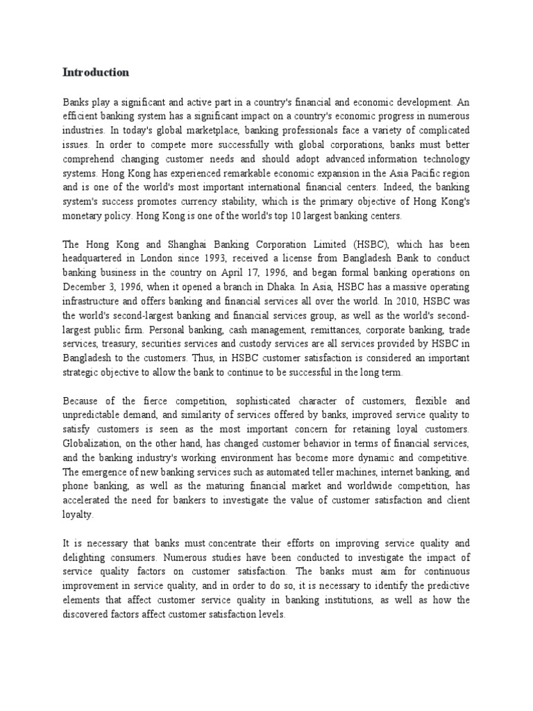 Bangladesh to the customers. Thus, in HSBC customer satisfaction is considered an important