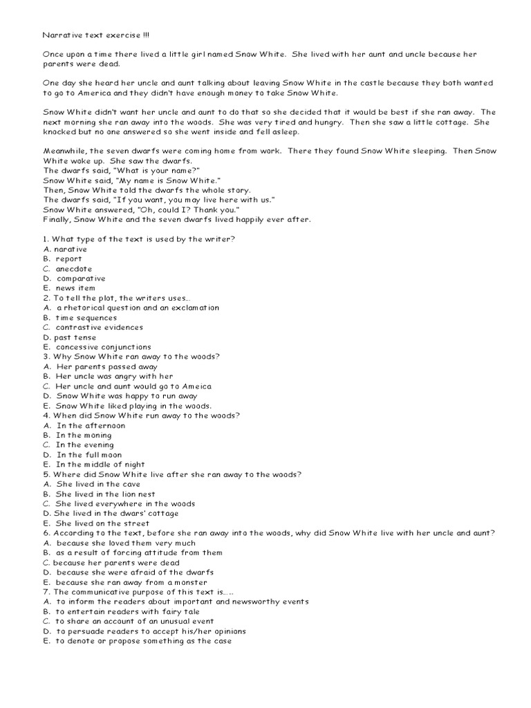 6. According to the text, before she ran away into the woods, why did Snow White live with her uncle and aunt?