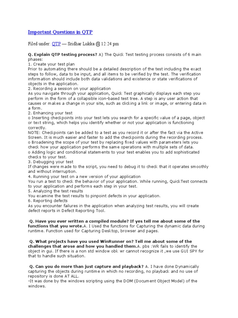 Important Questions in QTP: Filed Under: - Sridhar Lukka at 12:24 PM