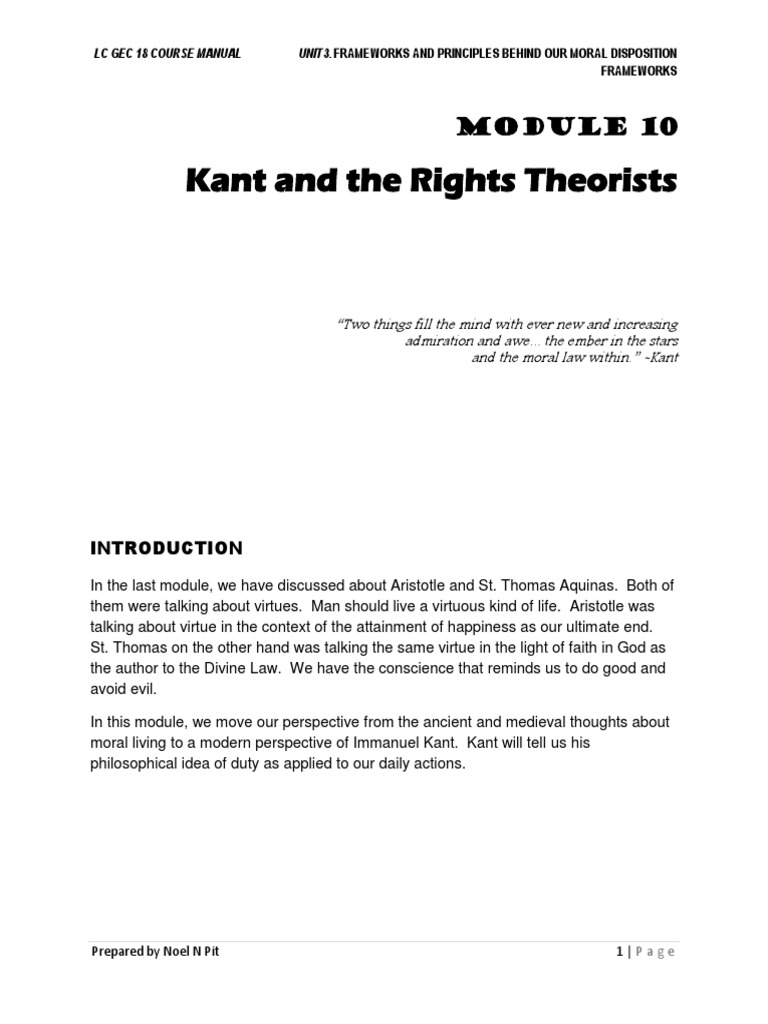 the learners of ethics sort through his/her task of living ethically. Kant’s research on