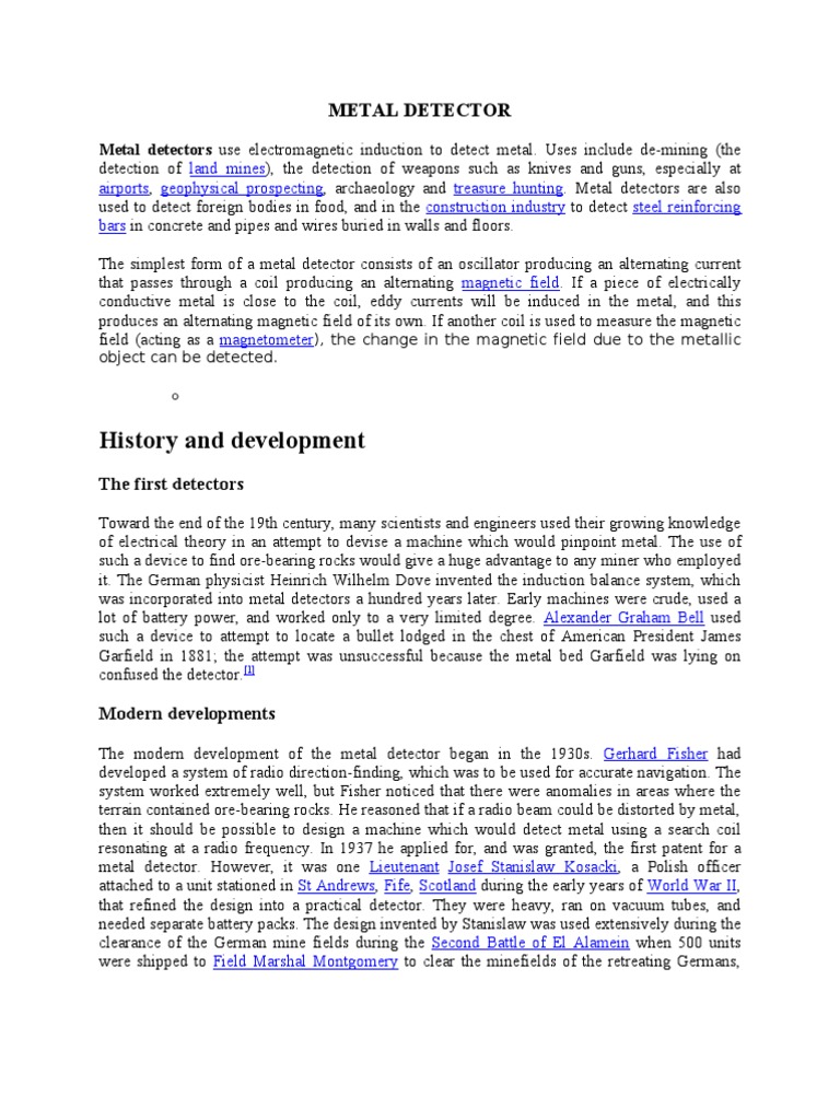 was incorporated into metal detectors a hundred years later. Early machines were crude, used a