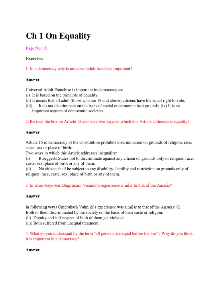 2. Re-read the box on Article 15 and state two ways in which this Article addresses inequality?