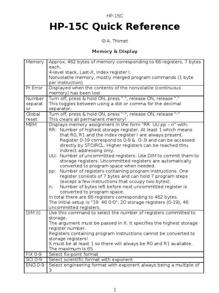 • Fore more details see HP-15C Owner's Handbook, Appendix