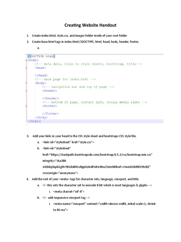2. Create base html tags in index.html (!DOCTYPE, html, head, body, header, footer,