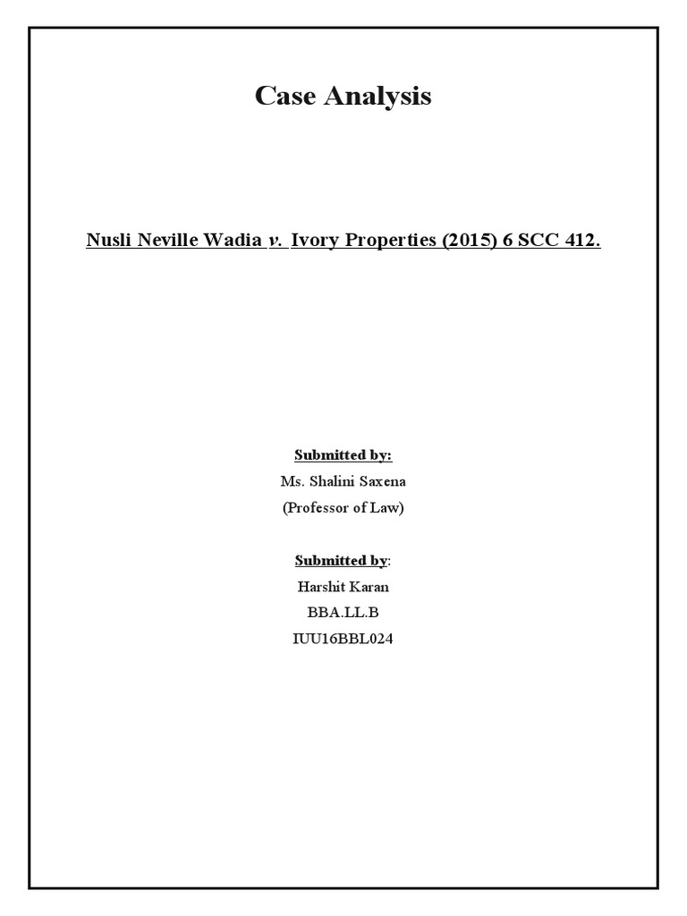 Nusli Neville Wadia v. Ivory Properties (2015) 6 SCC 412.