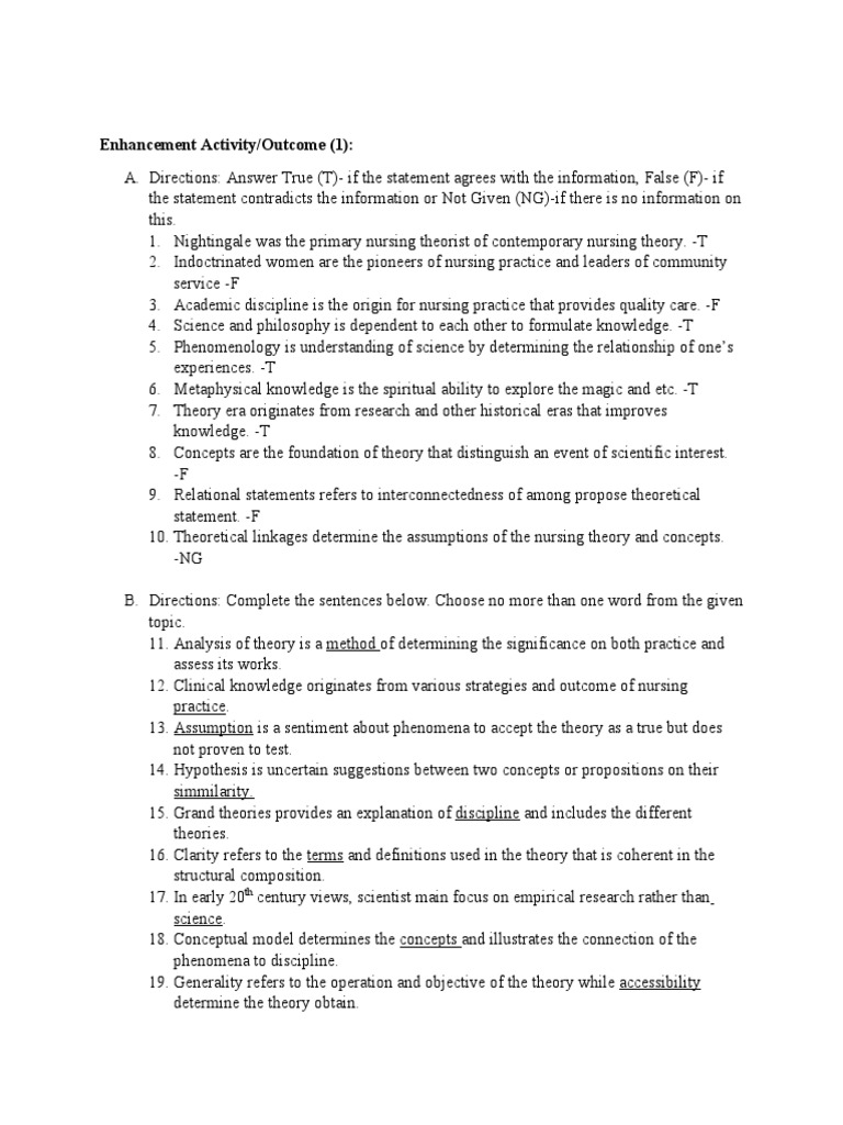 1. Nightingale was the primary nursing theorist of contemporary nursing theory. -T