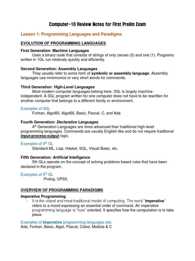 Computer-10 Review Notes for First Prelim Exam