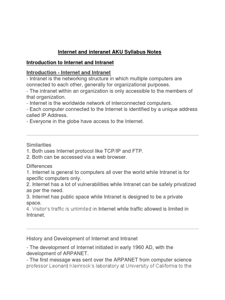 History and Development of Internet and Intranet