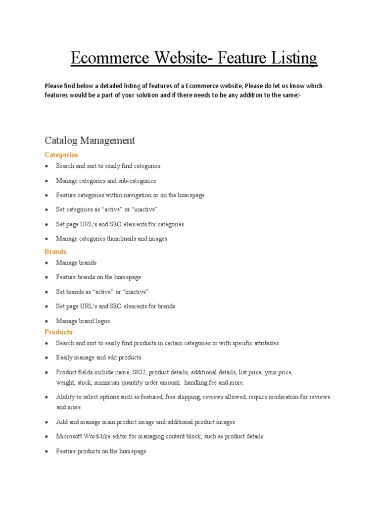 Please find below a detailed listing of features of a Ecommerce website, Please do let us know which