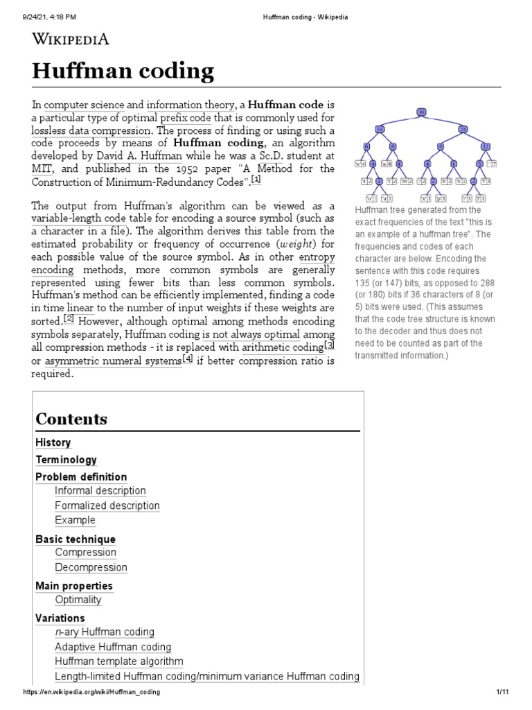https://en.wikipedia.org/wiki/Huffman_coding 1/11