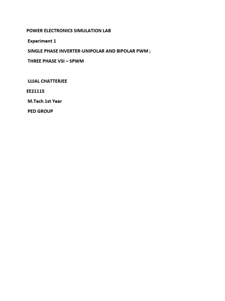 SINGLE PHASE INVERTER-UNIPOLAR AND BIPOLAR PWM ;