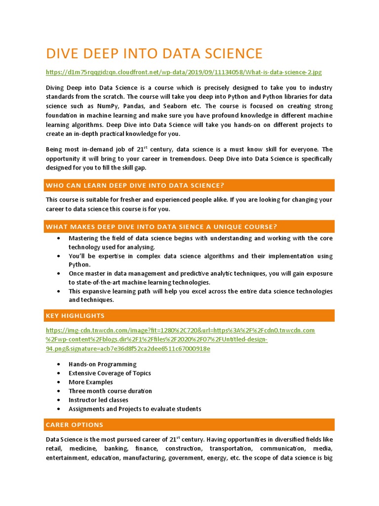 opportunity it will bring to your career in tremendous. Deep Dive into Data Science is specifically