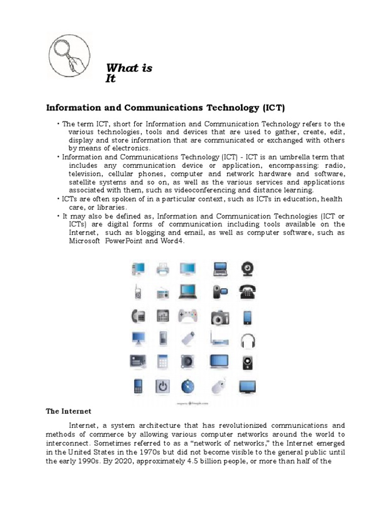 • Information and Communications Technology (ICT) - ICT is an umbrella term that