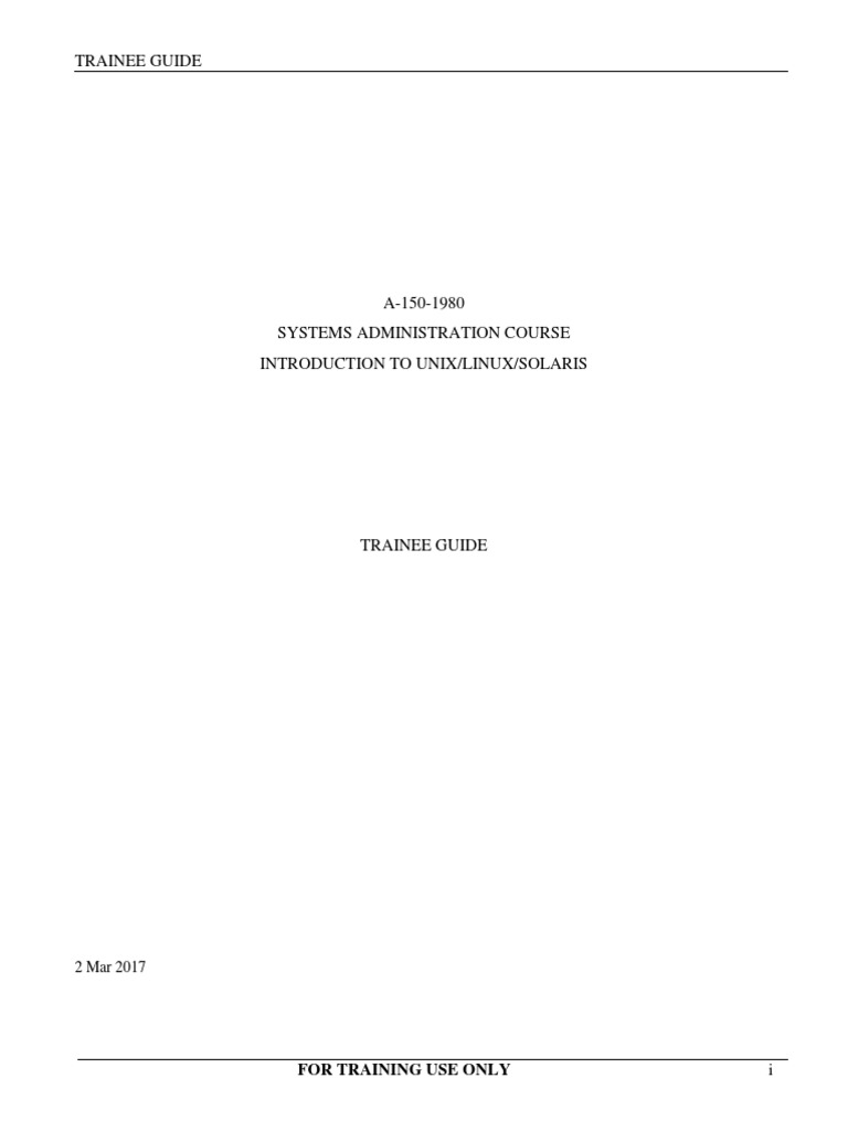 This Trainee Guide was prepared to guide your training on the Unix/Linux basics.