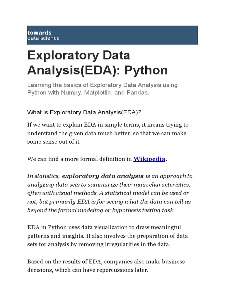 This is how we’ll do Exploratory Data Analysis. Exploratory