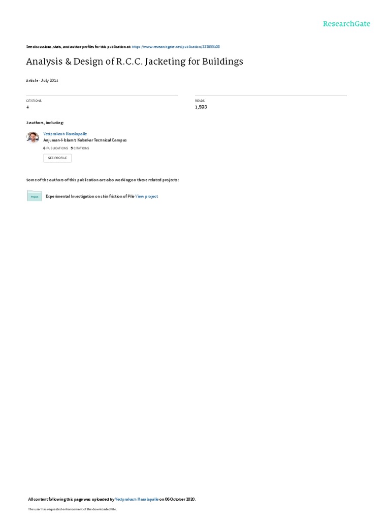 Analysis & Design of R.C.C. Jacketing for Buildings