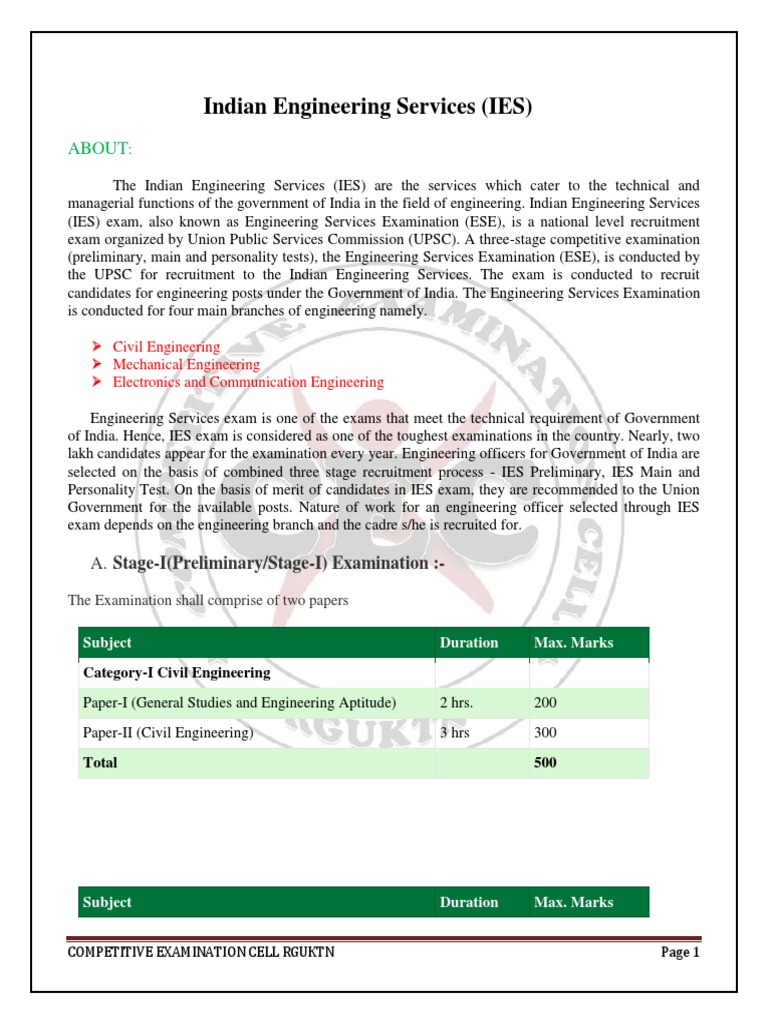 (IES) exam, also known as Engineering Services Examination (ESE), is a national level recruitment