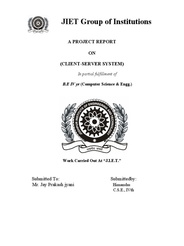 This project ”CLIENT-SERVER SYSTEM” is refer to the respective faculty