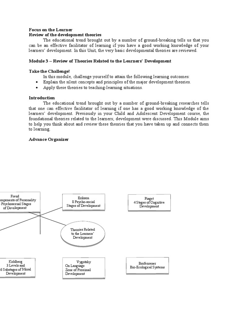 Module 3 – Review of Theories Related to the Learners’ Development