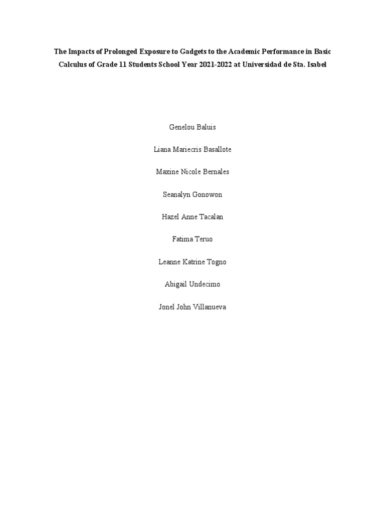 of prolonged exposure to gadgets on the academic performance of grade 11 students at