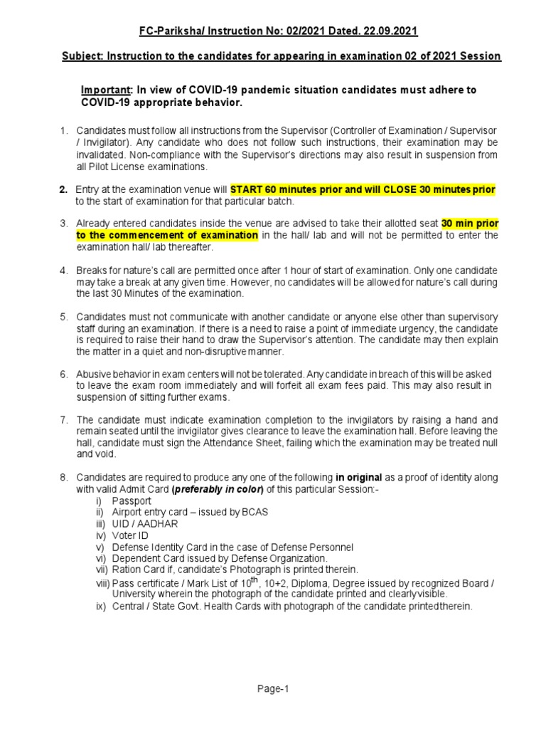FC-Pariksha/ Instruction No: 02/2021 Dated. 22.09.